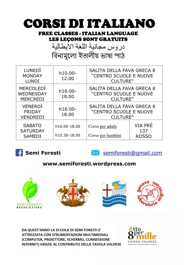 - 3 computer portatili, che vengono utilizzati anche nei corsi di italiano base per avvalersi di materiale multimediale e per informatizzare l’archivio degli studenti e dei corsi e per il corso specifico di